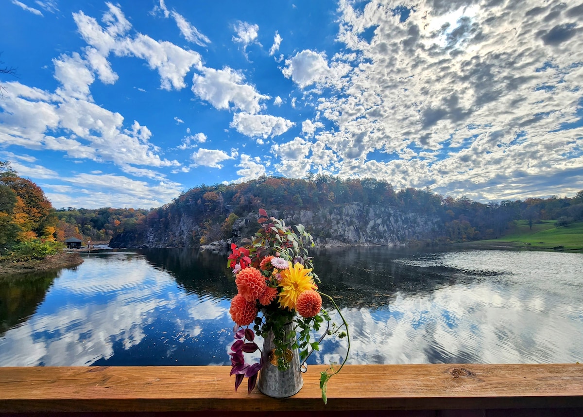 Per què reservar un hotel quan pots gaudir d'una encantadora suite privada de 2 habitacions amb unes vistes impressionants de les muntanyes Catskill, el riu Hudson i una posta de sol impressionant? Aquest tranquil refugi ofereix: Entrada privada, bany privat, cuina petita, banyera de cedre i aparcament fàcil. Desperta't amb el sol i gaudeix d'una tassa de Nespresso o te. És l'escapada perfecta per relaxar-te, caminar, fer jogging, anar en bicicleta, meditar o simplement desconnectar.