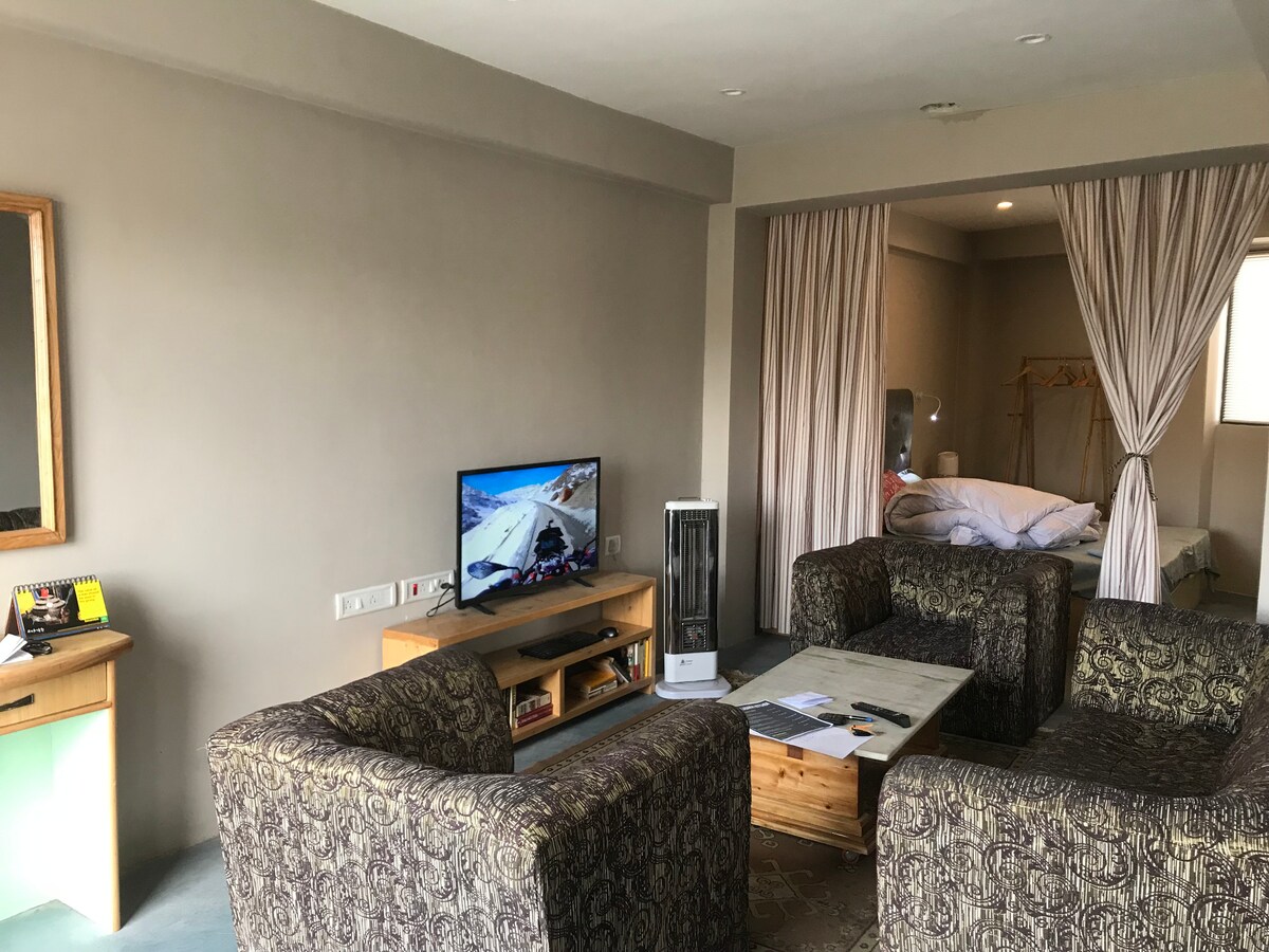 Amb només un quilòmetre i mig de l'aeroport, un pis situat al mercat, juntament amb vistes a la terrassa de la muntanya Stok, el palau Leh, Tsemo, Shanti Stupa, vista completa de l'aeroport, Khardongla pass, etc... Aquest lloc és molt còmode per a dues persones amb llit «king size», però pot dormir fàcilment fins i tot sis o més persones... aquest lloc està equipat amb tots els accessoris de cuina... rentadora totalment automàtica, etc... i amb sistema de calefacció elèctrica...