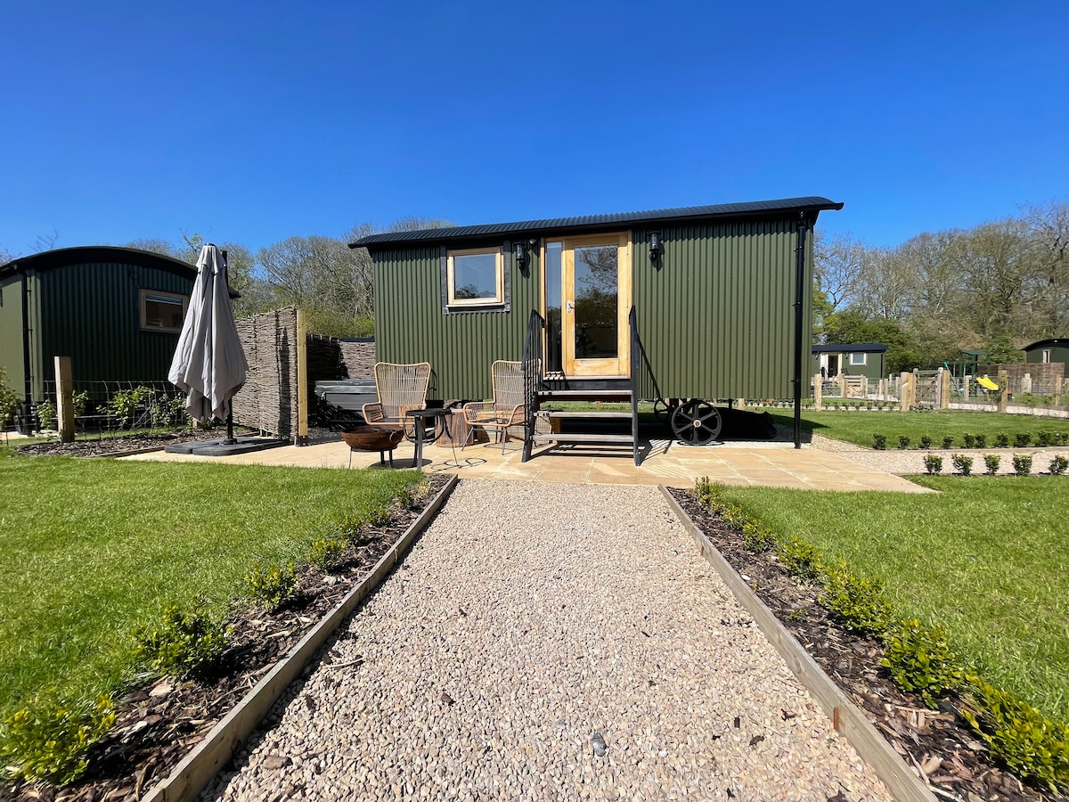 Two bed shepherds hut with ensuite and hot tub