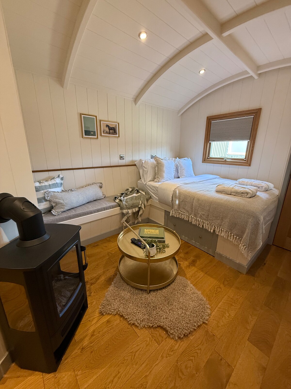 Com a Superhosts [hi ha una casa rural de 3 dormitoris i un estudi de 2 dormitoris a la granja] els hostes ens van demanar alguna cosa una mica més "fora de la xarxa", així que la NOVA per al 2024 és WoolShed. Una caravana de fusta de luxe a mida. Gaudeix de tots els avantatges d'una posició remota: no pots veure un altre habitatge des de WoolShed que es troba fora d'un carril sense trànsit. No et passa per alt una ànima. Escolta els ocells carpinteros, mussols, faisans, cérvols i altres animals salvatges. Mira amunt per veure estels de cua vermella
