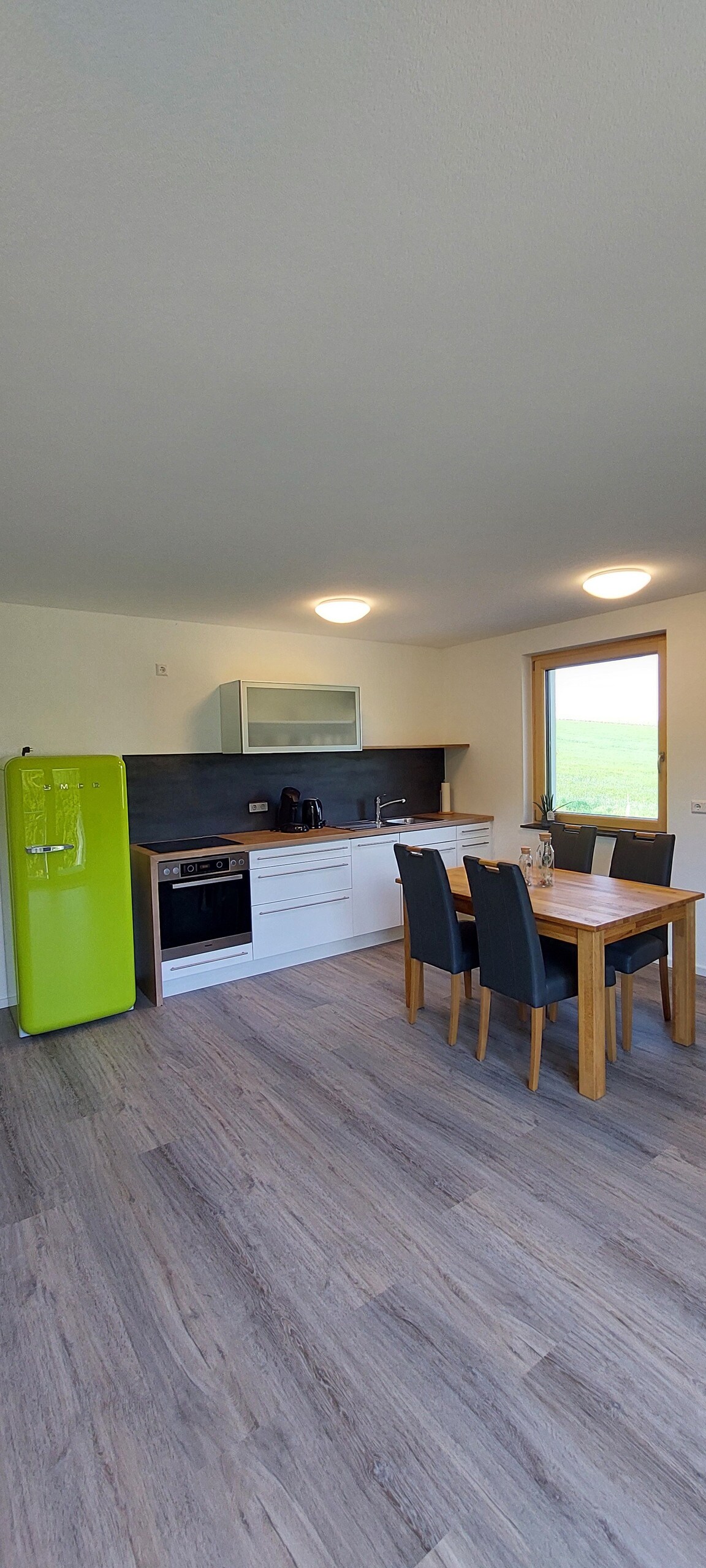 Relaxa't en aquest lloc especial i tranquil. L'àtic de la 3a planta ofereix 2 dormitoris, 1 saló menjador, cuina i bany. La casa és un edifici nou i, en conseqüència, l'interior està decorat en colors vius i amables. L'apartament es troba en una ubicació tranquil·la i té una bonica vista del camp, des d'on es pot relaxar de la vida quotidiana. Equipament: Calefacció sota terra, SFK complet inclòs. Vajilla, dutxa a peu, finestres de terra a sostre a la cuina i al menjador.