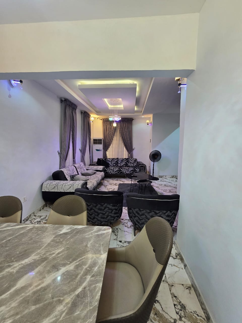 Enjoy comfort and style in this modern 3-bedroom duplex in a secure, family-friendly Lekki estate. The home features a spacious living area, fully air-conditioned rooms, fast Wi-Fi, a PS5, and a fully equipped kitchen. Solar backup ensures power during outages (AC not included, but large fans provided). Guests can enjoy estate amenities: swimming pool, gym, playground, and free parking. Perfect for families, groups, and business travelers.
