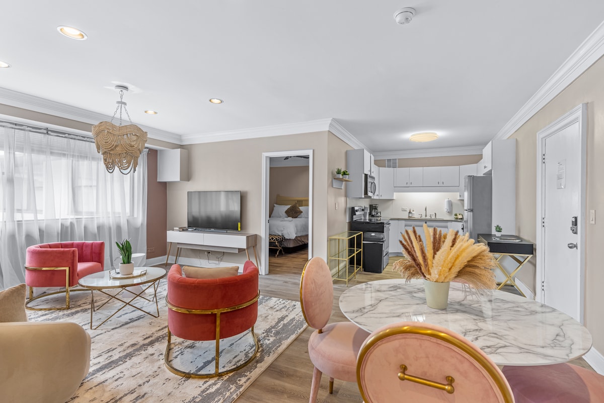 Aquest modern allotjament a Buckhead et situa al cor de l'acció. A pocs passos del centre comercial Lenox, envoltat de restaurants molt ben valorats i a només 3 minuts a peu del tren. A l'interior, trobaràs una decoració elegant, un confort espaiós i detalls ben pensats que et faran sentir com a casa. A fora de les finestres, la ciutat cobra vida. El trànsit i el soroll inconfusible de l'energia de Buckhead formen part de l'experiència perfecta per als hostes que volen gaudir d'un ambient urbà emocionant.