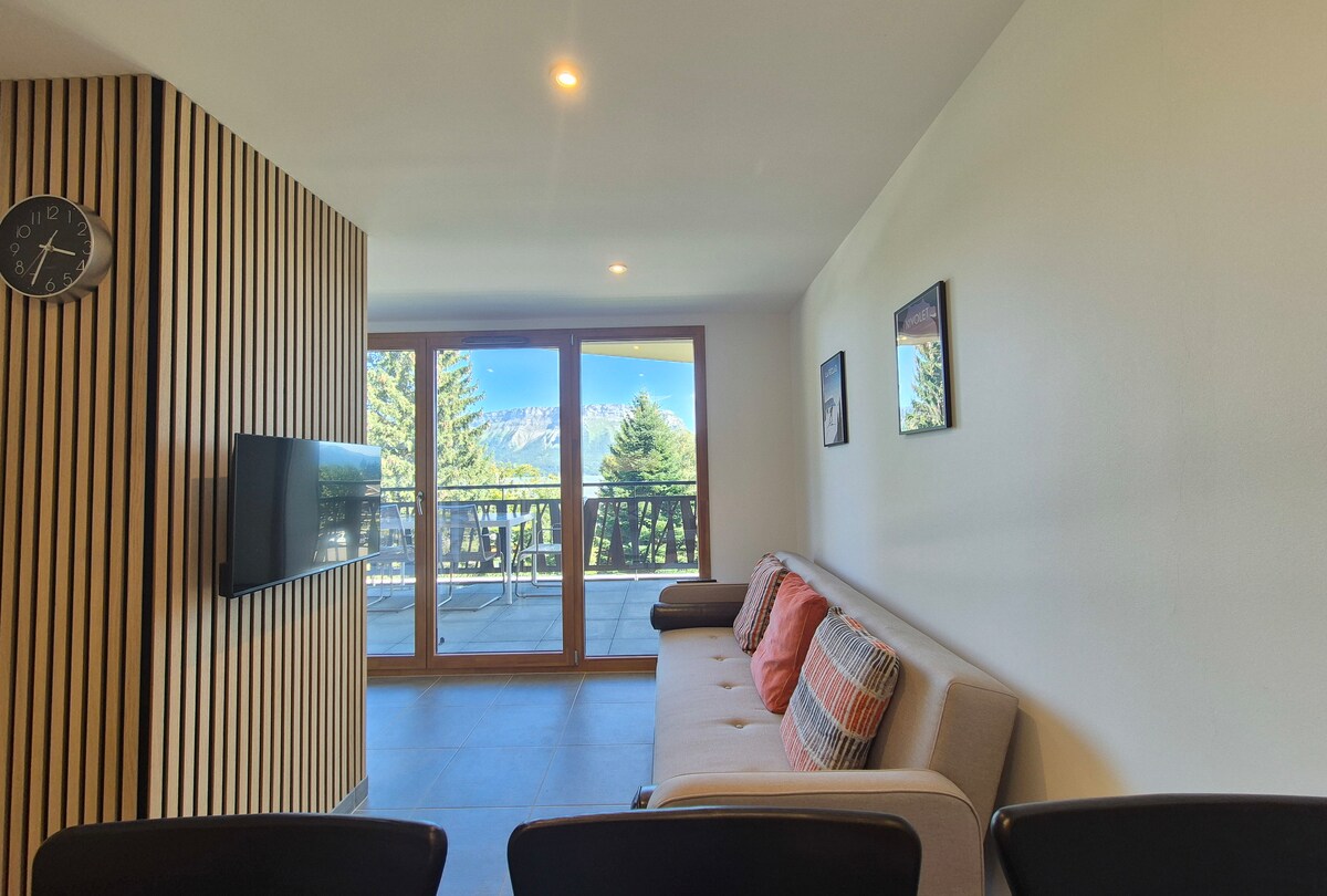 5 de puntuació mitjana d'un total de 5; 32 avaluacionsCasa rural 4 persones Planta baixa vistes al jardí Margériaz 2 habitacions 3 llits