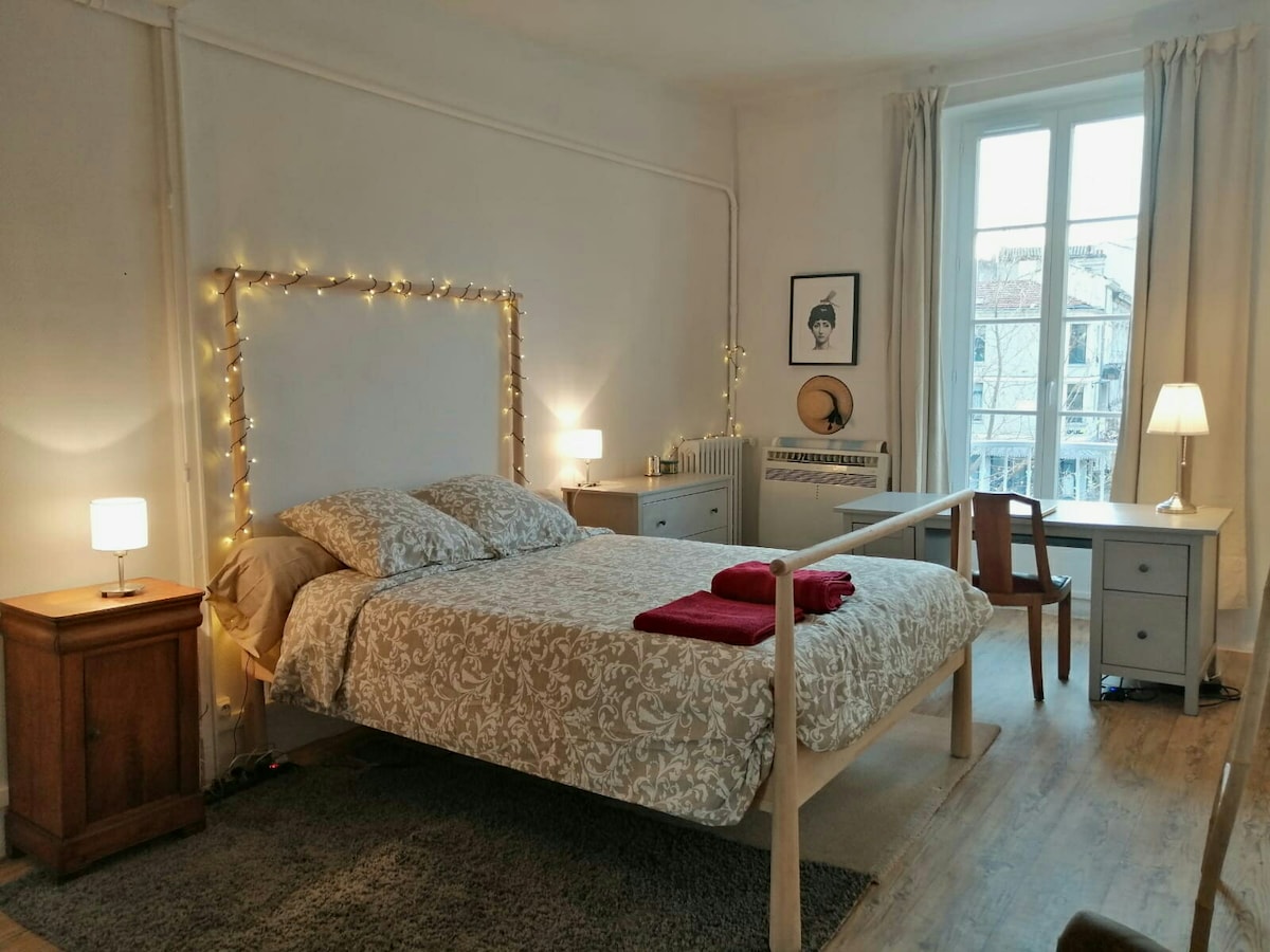 Hola a tu, viatgers d'aquí o de qualsevol altre lloc, sols o acompanyats! Et convidem a allotjar-te al nostre preciós i espaiós apartament situat a Place Pie, al cor d'Avinyó. Encreuament i lluminós amb vistes als arbres i al recorregut Saint Jean. La ubicació et permetrà arribar en uns passos al mercat de Les Halles i la seva preciosa paret verda (s'ofereix aparcament), el Palais des Papes, botigues i la quantitat de petits bars que fan que el nostre espai sigui tan agradable. T'esperem!