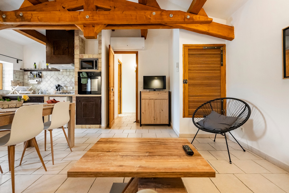 Casa de camp a la planta baixa, dormitori independent, dutxa, vàter separat i sala d'estar/cuina al cor del Parc Regional de Luberon, en un antic llogaret. Accés directe a un espai natural protegit. Piscina petita per compartir! Animals a la propietat (ases, cavalls, gossos, gats, gallines, ovelles). Ideal per als amants de la natura, el senderisme, l'escalada, el ciclisme de muntanya... o simplement per allunyar-se de tot. Hola! Atenció: el camí requereix una distància al terra superior o igual a la d'un vehicle estàndard.