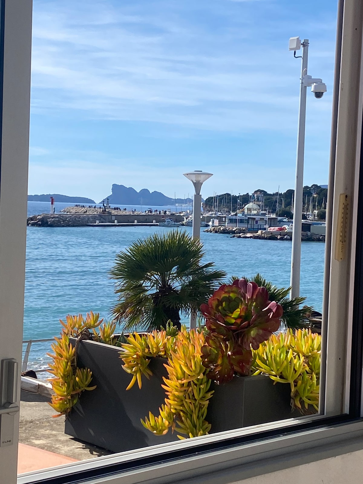 Preciosa vista de la badia de St. Cyr des del nostre gran balcó 3r pis d'un edifici tranquil. Pots trobar botigues, restaurants, etc., fora de l'edifici. La platja està just als teus peus. Activitats aquàtiques, excursions al bosc o a les vinyes, mercat provenzal, tot per relaxar-se i passar-ho bé. Allotjament ideal per a una parella o una família petita amb 2 nens. Si SÓN 4 ADULTS, 10 euros addicionals per adult i nit. Prohibit fumar