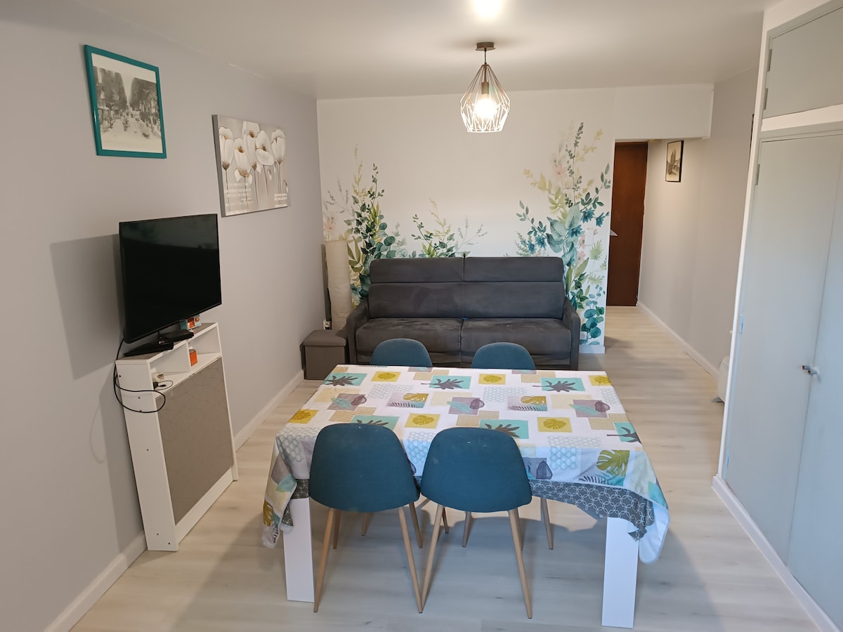 Vine i descobreix el nostre lloguer en una petita residència situada a 20 metres de la platja. Apartament T2 completament reformat de 42 m2 situat a la segona planta amb balcó i vistes al mar. Compta amb una cuina oberta a la sala d'estar amb sofà convertible per dormir diàriament en 160x200. Un dormitori gran amb roba de llit de 160X200, despatx per teletreball, vestidor. Bany amb dutxa gran, vàter independent. Televisor, internet de fibra, aire condicionat, 1 plaça d'aparcament a la residència. A prop de totes les botigues