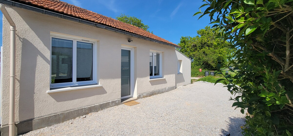 Situada a Valognes, en un carrer tranquil paral·lel a 300 metres de l'estació de tren, una petita casa bonica de 65 m2 moblada i completament reformada, a 5 minuts a peu de les botigues. A prop, pots descobrir diversos llocs d'interès turístic. (Platges d'aterratge, museus, centres d'oci, parc d'animals, ciutat del mar a Cherbourg, complexos costaners...)