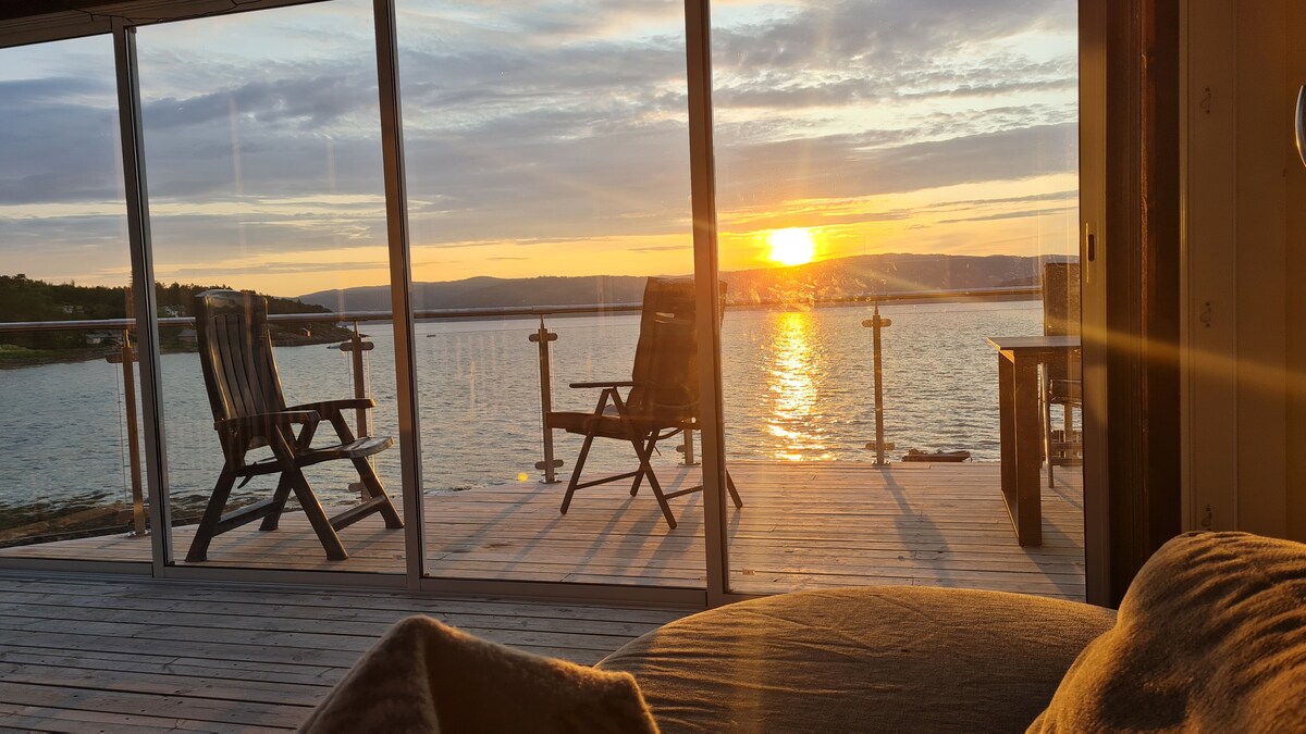 Fantastisk beliggenhet ved Trondheimfjorden. Her kan du fiske, bade, stå på vannski eller tube, kjøre båt og padle kajakk eller med SUP. 2 måls usjenert tomt ned mot sjøen, egen strand, brygge og stupebrett. 4 soverom og 5 sofa. 2 bad, stor og luftig spisestue og stue. Lading av elbil. Vinterstue med sofa hvis det er litt vind, alle dører kan åpnes i vinterstuen. Jacuzzi som holder 40 grader året rundt. 2 båter med 60 hester og 9,9 hester, og med vannski, Tube 2 Kajakker 2 SUP-brett.