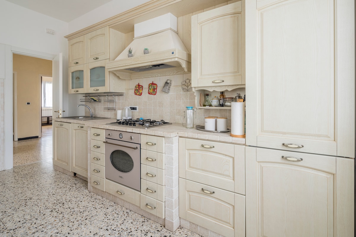 Appartamento in zona tranquilla e silenziosa, a soli 50 metri dal centro paese,dai bar, ristoranti , negozi di alimentari,souvenir e banca. La stazione dei treni,la spiaggia e l'attracco dei battelli, sono solo a 5 min. a piedi L'appartamento è dotato di angolo cottura , aria condizionata e di free WI-FI. -Per legge è necessario, al vostro arrivo, presentare i documenti d'identità e pagare,in contanti, la tassa di soggiorno di 3 Euro al giorno per persona,per i primi 3 giorni di soggiorno.