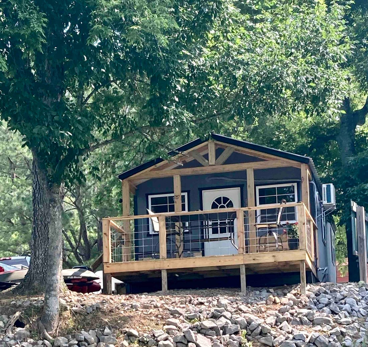 Relaxa't en aquest espai tranquil i elegant. Vine a gaudir de boniques postes de sol a la teva terrassa privada mentre et relaxes en una banyera d'hidromassatge o assegudes al voltant de la foguera. Gaudeix d'aquest acollidor refugi a només 1 milla del camp de golf RTJ i a 3 milles de la rampa per a vaixells més propera. Aquest allotjament ofereix una cuina amb cafeteria i nevera per a vins, televisor interior/exterior, dutxa espaiosa i banyera amb peu de garra. També oferim connexions per a serveis d'embarcacions i autocaravanes. Gaudeix d'una gran varietat de menjar i entreteniment a 10-15 minuts.