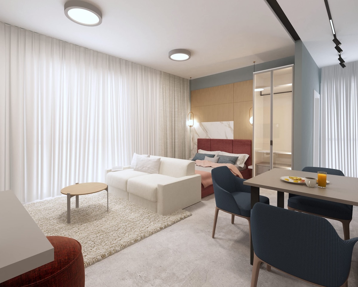 Experience a relaxed coastal stay with everything taken care of for you. This studio apartment is ideal for couples looking for comfort, convenience, and access to premium shared facilities — all within a professionally managed setting. Located within the Evianamar villas, guests enjoy access to two shared swimming pools, reserved sun loungers at the beach, and concierge services throughout their stay.