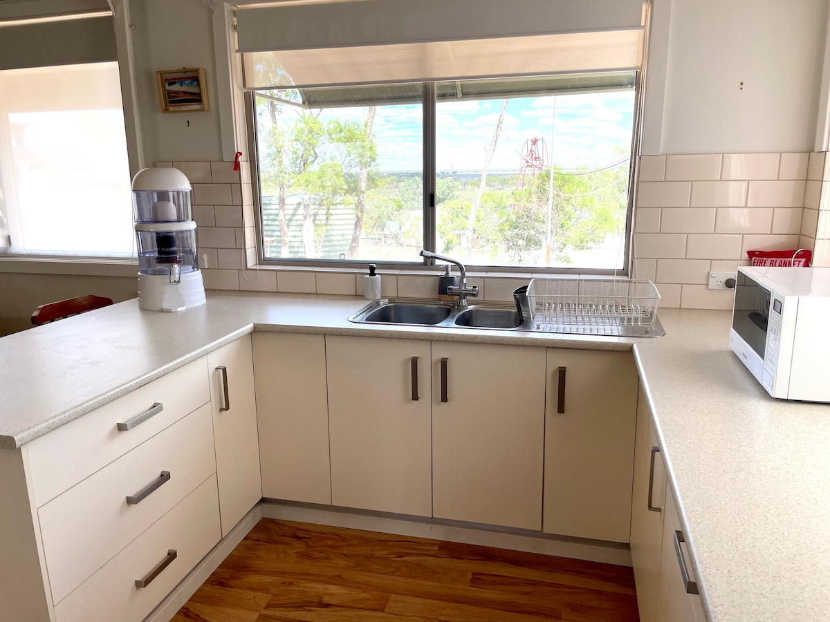 Welcome to Lightning Ridge - Black Opal Country Our house is located at the Edge of Town in a quiet area which backs onto opal fields. The house is on a large private block and is a 1-2 minute drive to the shops and post office. The home is fully furnished, and has a Tranquil garden next to the freestanding pergola with outdoor setting. We have 3 airconditioners for you to enjoy inside the house.