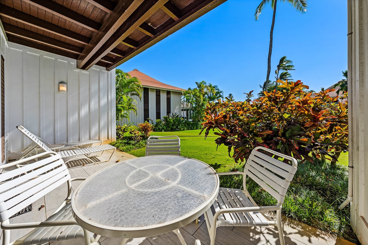 Ground Floor és un espai obert a la natura, on pots sentir l'herba i l'olor de les flors. Kiahuna Plantation és un complex hoteler davant de l'oceà amb paisatges verds ondulats, flors perfumades, mangueres, estanys Koi i accés a un club de salut d'alta gamma. Estacions de barbacoa, bugaderia, piscina amb tobogan, spa, restaurants elegants i una cafeteria. Submergeix-te i gaudeix de les tortugues a la vora de la platja. Visc a l'illa i estic disponible per qualsevol motiu. No dubtis a fer-me les preguntes que tinguis. Et respondré ràpidament. Edifici 16.