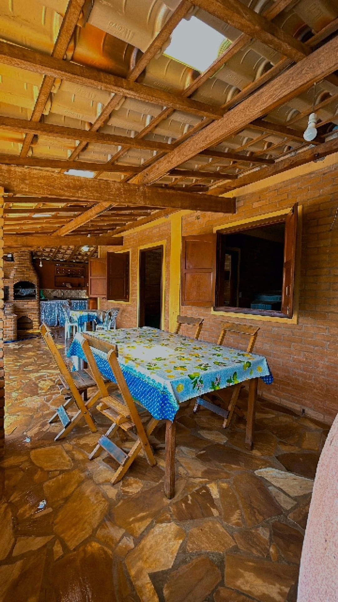 El nostre xalet a Ibitipoca és molt acollidor i còmode, té 2 dormitoris amb 6 llits, capacitat per a 8 persones, té 2 banys, 2 balcons, menjador, sala d'estar, jocs, cuina amb estufa de llenya i barbacoa, una terrassa amb un aspecte meravellós per a la posta de sol. També hi ha una llar de foc molt bona per escalfar-se pel fred! Es troba al campament, en una parcel·la de mil metres quadrats, i té un preciós jardí a la façana, amb diversos arbres autòctons i diverses flors, on hi ha una dutxa molt agradable!