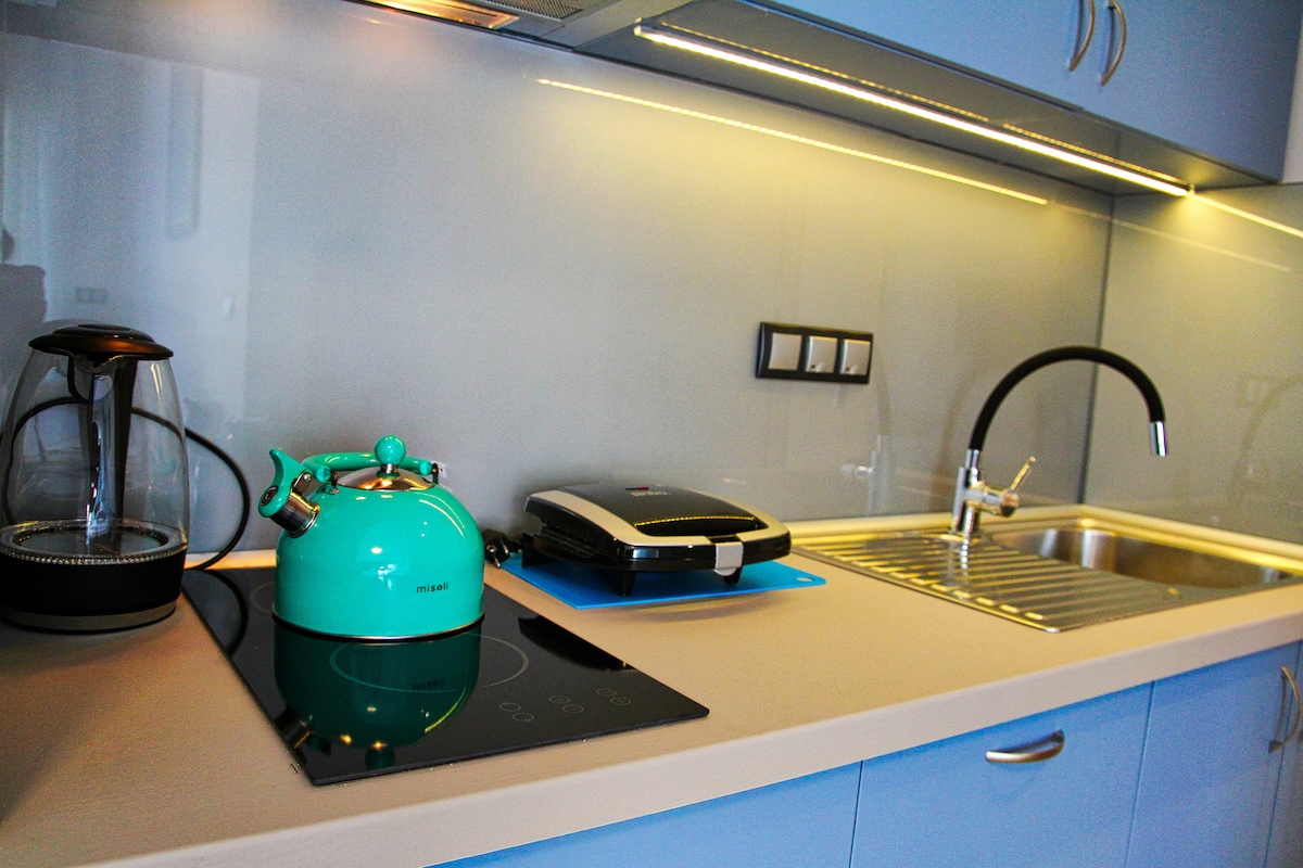 Elite és un apartament modern de primera qualitat (amb aparcament privat) situat al carrer principal d'una zona segura a prop del mar (platja de Kalamitsa) i a 4 minuts en cotxe del centre de Kavala. Hi poden dormir fins a 4 persones i està ben equipat fins i tot per a estades de diversos dies, durant tot l'any. Està situat en una planta d'un edifici d'apartaments de luxe de nova construcció i té 2 balcons. Està dissenyat perquè les teves vacances a Kavala siguin inoblidables!