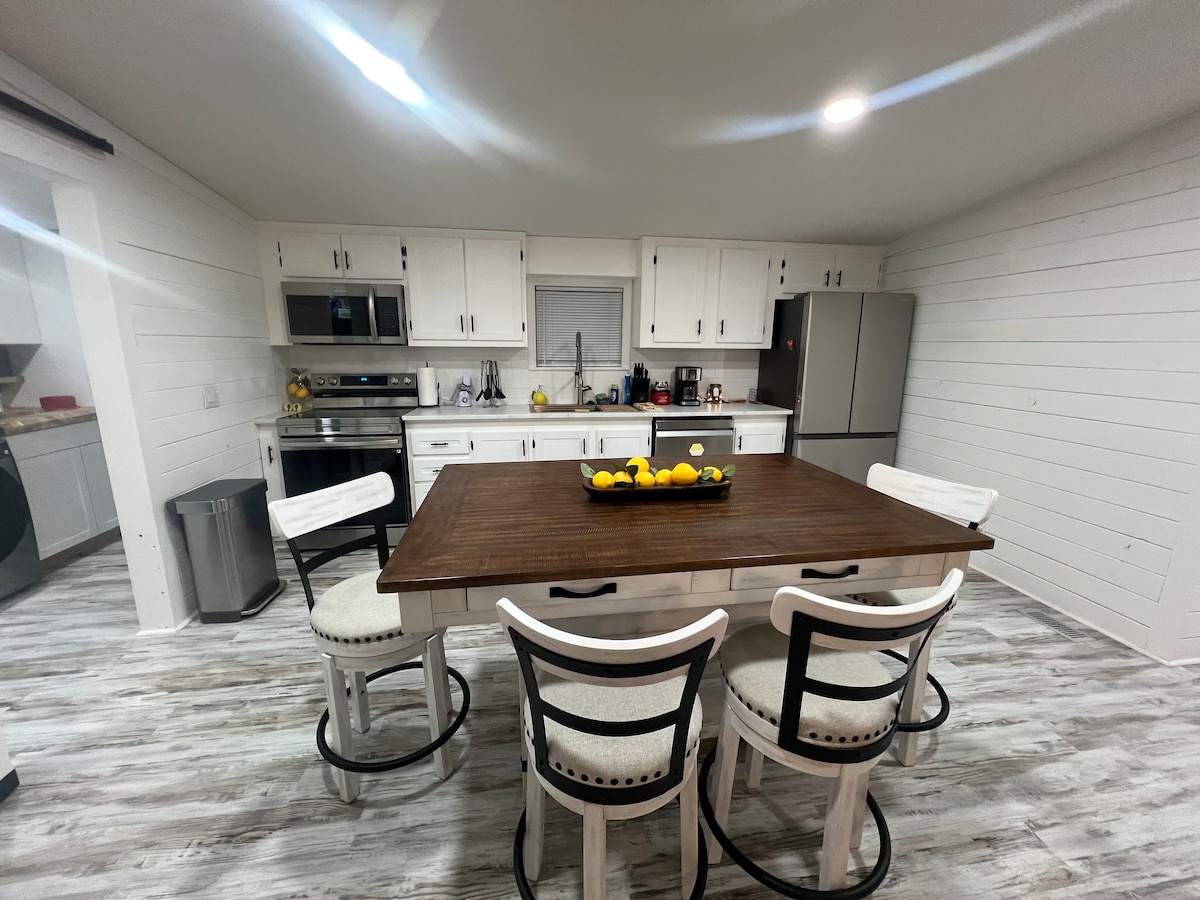 Ampli allotjament de 3 habitacions i 2 banys ideal per a famílies desplaçades o estades llargues. Disposa d'un gran disseny d'espai obert, cuina completa, rentadora/assecadora, wifi ràpid i televisors intel·ligents. Disseny d'una sola planta amb espai per a tothom. Barri tranquil a prop de parcs, botigues de queviures i escoles. Pati tancat amb foguera i graella. S'admeten animals de companyia amb aprovació. Ideal per relaxar-se, treballar a distància o mantenir la família còmoda durant la transició.
