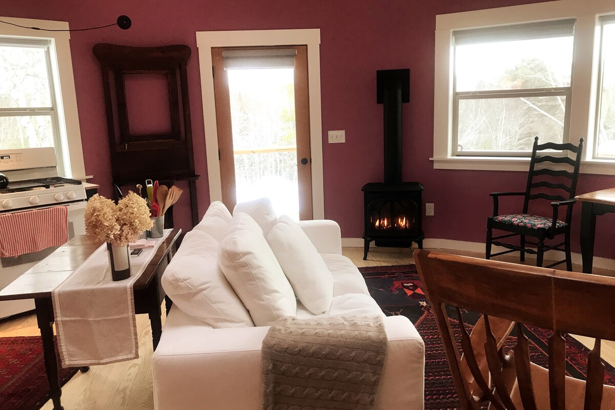Little Apple Cabin és una caseta privada en cinc hectàrees de bosc, creada per als hostes que volen tranquil·litat, espai i un descans profund. Envoltat d'arbres i terres de conreu, és un lloc senzill i intencionat per frenar, dormir bé i gaudir de Maine sense multituds ni soroll. La caseta té un llit «king size» a la planta principal, una estufa de llenya acollidora i una terrassa de cedre per prendre un cafè, llegir i observar les estrelles. Camden i Rockland són a uns 25 minuts i Belfast és a uns 30 minuts.