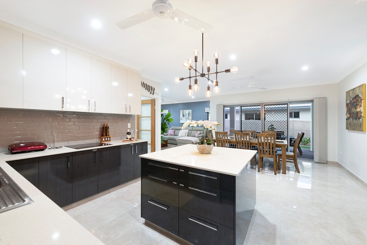✨Relaxa't amb estil en aquest refugi de 3 dormitoris de nova construcció a Zuccoli✨ Dissenyat per a famílies i grups, gaudeix d'una barbacoa a l'aire lliure, relaxa't a la piscina amb una beguda a la mà o mira les últimes pel·lícules a la sala multimèdia privada. Els pares poden relaxar-se a les àmplies zones d'estar i menjador mentre els nens es diverteixen. Aquest allotjament, situat en un barri residencial tranquil a només 25 minuts del centre de Darwin i de l'aeroport, combina comoditat, conveniència i luxe.