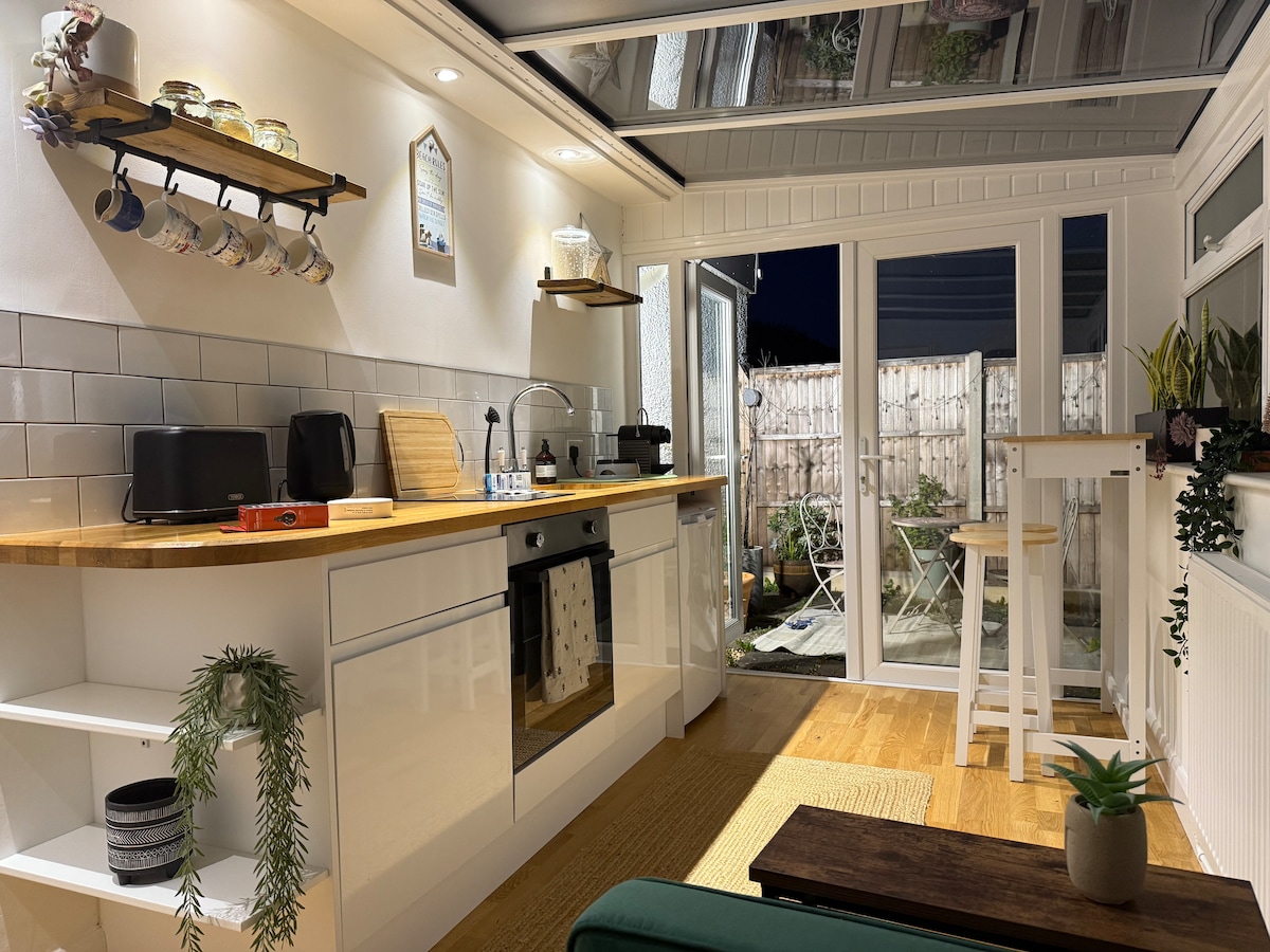 Aquest petit lloc únic té un estil propi. Acollidor, còmode i net. Situat en una zona residencial a West Worthing amb accés a botigues, a l'estació de tren i a les rutes d'autobusos. A poca distància de la platja o teniu l'ús de bicicletes. Hem convertit aquest espai en un allotjament independent per a la nostra filla que des de llavors ha volat al niu. Tenim una cuna de viatge compacta per dormir Joie Kubbie si és necessari i un petit espai de treball per al teu ordinador portàtil. Amfitriona: Caroline & Dave