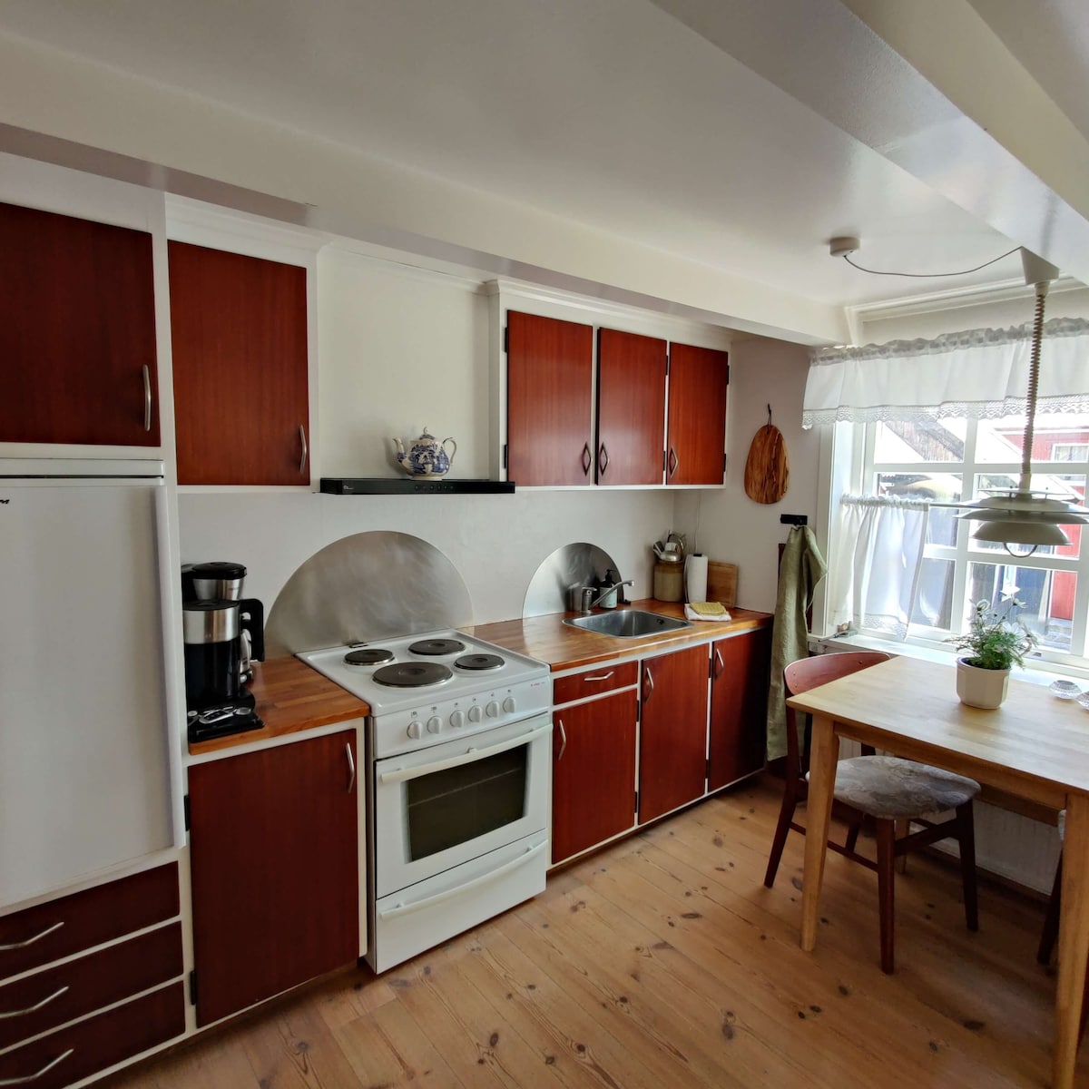 Una romàntica casa centenaria, possiblement la casa d'estiu més antiga de les Illes Feroe. La casa és ideal per a una petita família. Hi ha dos dormitoris. Una amb 1 llit de matrimoni i una amb 1 llit individual per a llit supletori per a dos. Hi ha un saló romàntic, cuina, vàter amb dutxa, lavanderia, vestíbul d'entrada, vestidor i sala de treball, per exemple, per al pc. veure les imatges.