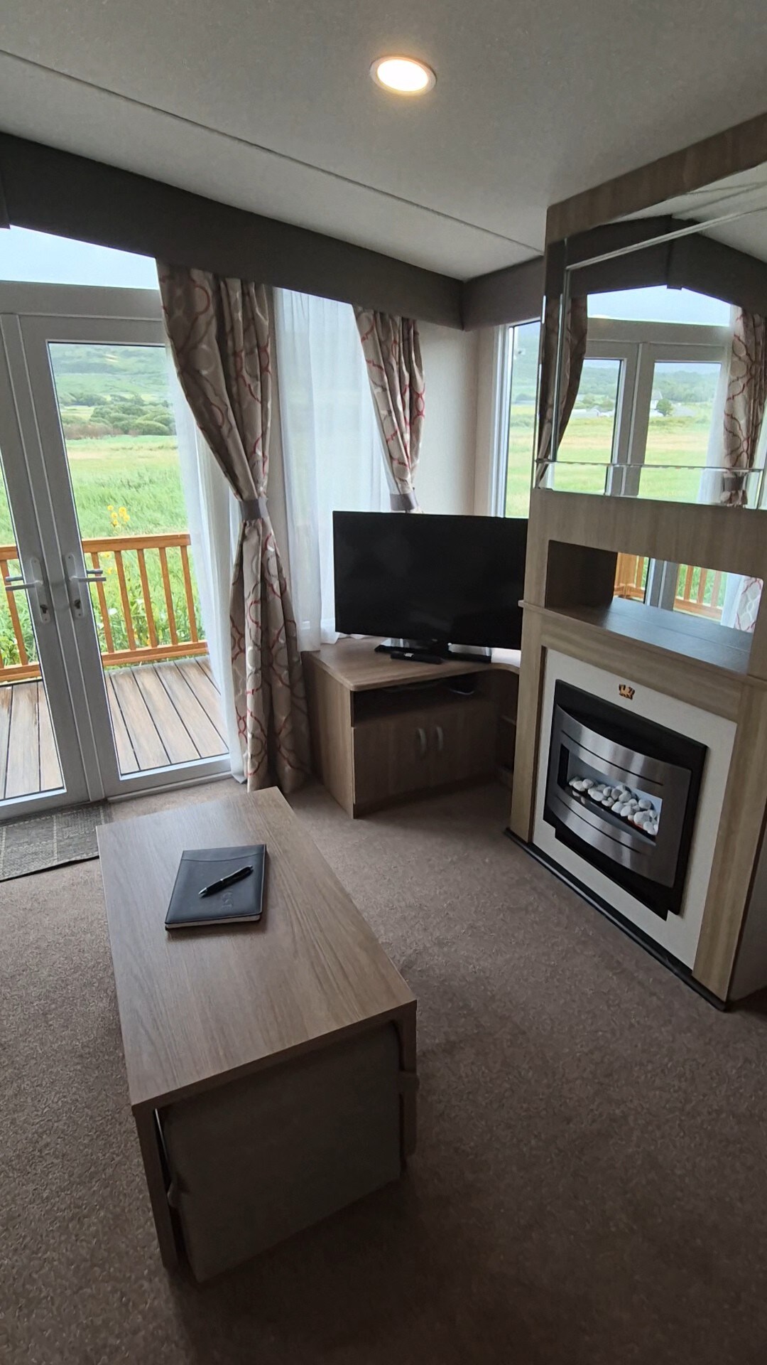 Impressionant caravana de fusta amb banyera d'hidromassatge i vistes al mar