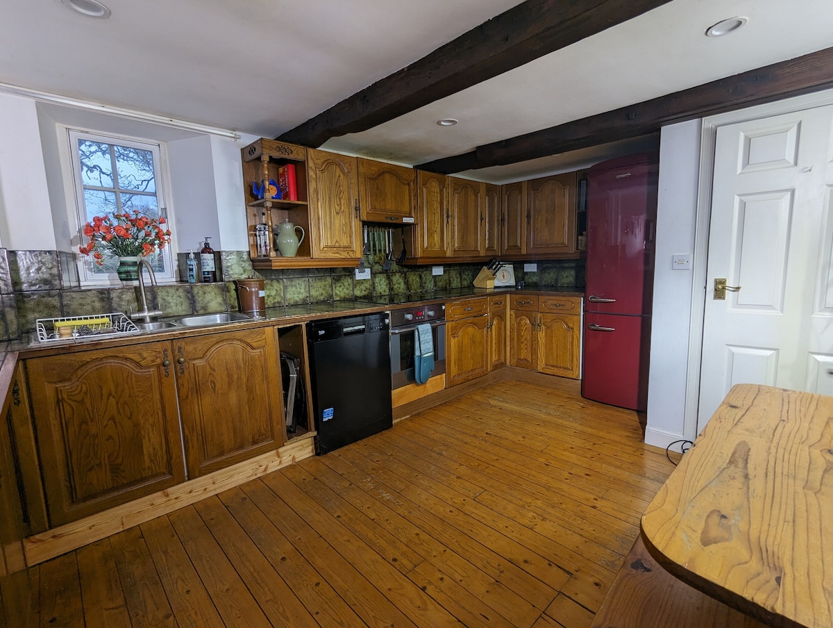 El nostre xalet es troba al nostre gran jardí ben gestionat. Tot i que està a prop de casa nostra i estem encantats de parlar, sempre respectem la privacitat de les persones. És un lloc molt tranquil on pots seure a fora i veure les flames de la foguera a la nit o quedar-te i passar una nit acollidora. Els nostres veïns són tots de la varietat de quatre potes, així que és d'esperar alguns sorolls rurals, però a les vaques els encanta venir a rebre't a la paret. Plaça d'aparcament al jardí