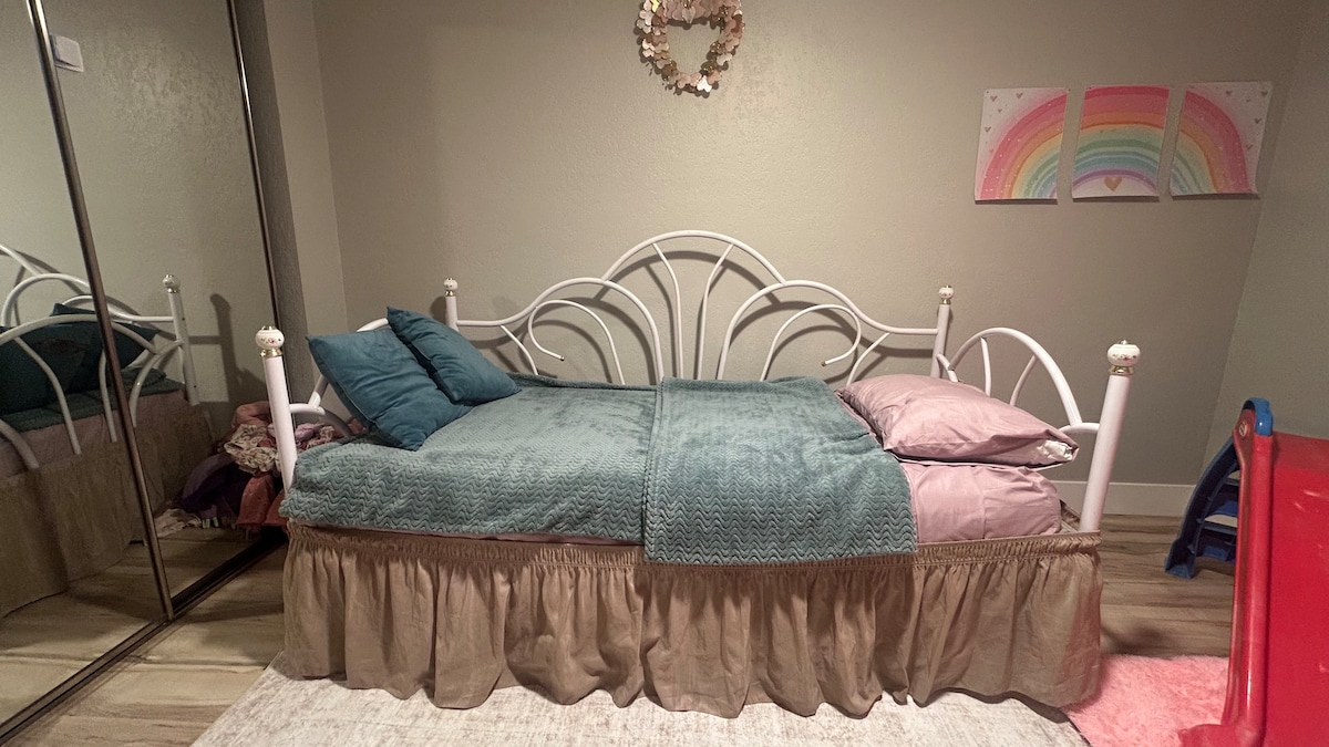 Et donem la benvinguda al nostre acollidor pis a Stockton! Aquest espai, ideal per a parelles, ofereix una suite privada amb un còmode llit «queen size» i un bany privat. La nostra cuina petita està equipada amb tot el que necessites per preparar els teus plats preferits. Relaxa't a la sala d'estar mentre mires la televisió o navega per Internet amb la nostra wifi d'alta velocitat. Tindràs la teva pròpia entrada privada. No esperis més i reserva ara una escapada relaxant a Stockton