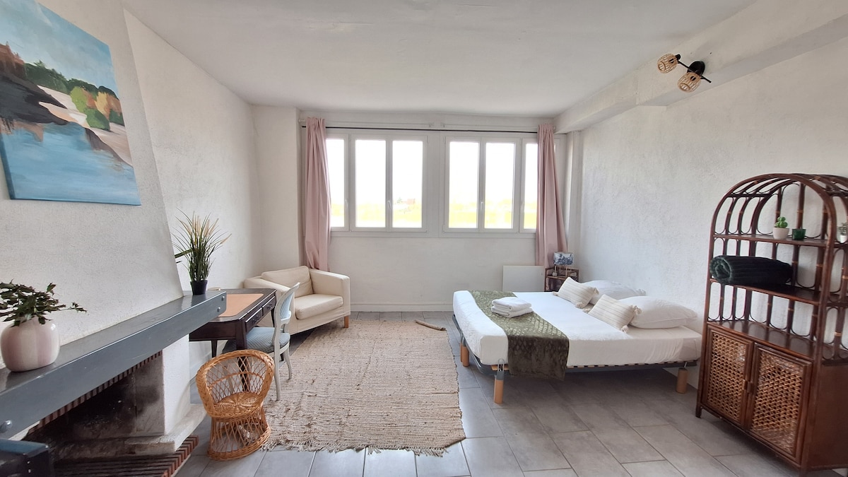 Gaudeix d'un allotjament independent a prop del centre de Montrichard, les seves botigues i restaurants. L'habitació, molt acollidora i reformada, et permetrà descansar en pau. Perquè puguis relaxar-te al màxim, el servei inclou la roba de llit, les tovalloles i la neteja. L'estudi està situat en una masia, a la part posterior del nostre pati, i està compost per un dormitori amb un llit de 160 x 200, un vàter i un bany amb dutxa.