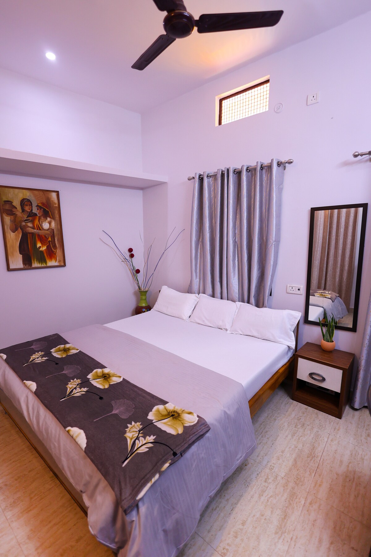 Apartament sencer al centre de Varanasi, amb transport local de confiança per visitar Varanasi. Pis modern d'1 habitació i cuina a prop d'Assi Ghat-Durgakund apte per a 4 hostes. Allotja't amb comoditat i estil al nostre modern apartament d'1 habitació amb 2 llits, a només 10 minuts en cotxe d'Assi Ghat, el cor cultural de Varanasi. Perfecte per a famílies, amics o grups petits (fins a 4 hostes). "La ubicació oferia un ambient serè i tranquil, lluny del caos del trànsit i envoltat d'un entorn obert.