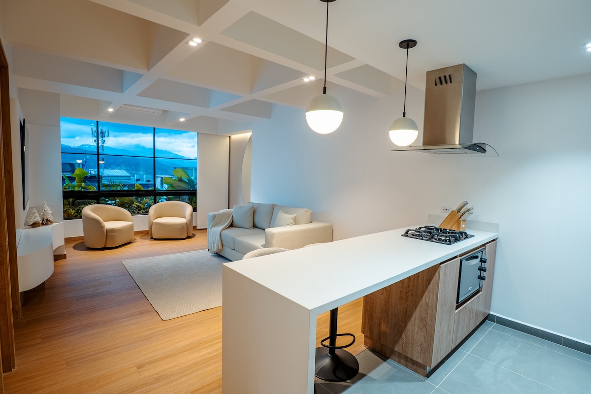 Et donem la benvinguda al nostre luxós àtic del pis 26, on l'elegància, la comoditat i les vistes inigualables es reuneixen al cor de Provenza. Aquest espai impressionant està dissenyat per a aquells que busquen el millor de la vida urbana. El nostre disseny de concepte obert integra a la perfecció la cuina, la sala d'estar i el balcó en una àmplia zona, perfecta per relaxar-se. Un balcó privat amb una banyera d'immersió de luxe que ofereix les vistes més espectaculars de l'horitzó de Medellín i les exuberants muntanyes que l'envolten.