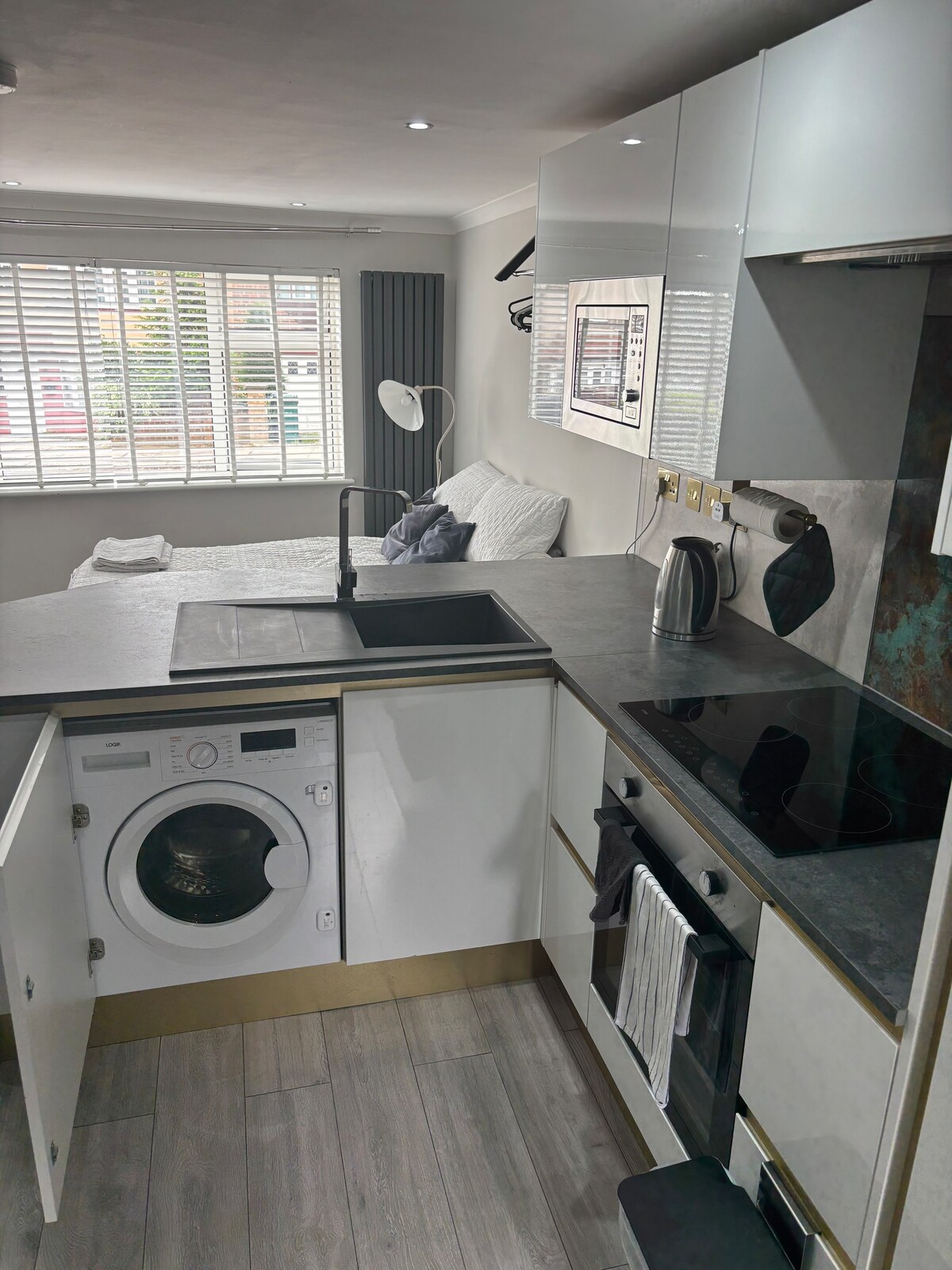 Aquest espai únic té un estil propi. És petit però espaiós i és ideal per a parelles, estades de negocis, joves professionals i fins i tot entusiastes del fitnes o YouTubers que viatgen a Londres . Entrada independent completa amb pany i clau codificats (accés independent, sense necessitat d'interactuar amb l'amfitrió)GRAN televisor amb Netflix inclòs. Inclou cuina petita, microones, anella calenta, plats, bols , coberts i tots els estris. Dutxa,vàter i un sofà llit (de mida "king"). *No es permeten festes a casa