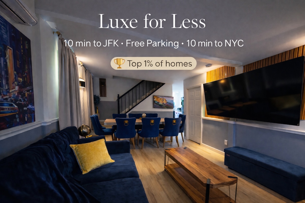 Pis de 2 dormitoris en un barri segur. 2 llits queen i matalàs inflable individual. Joc de tovalloles i llençols addicionals. Hi ha molt d'espai amb accés a la cuina, rentadora/assecadora (no es comparteix amb ningú més), sala d'estar i menjador espaiosos. Tindràs la teva pròpia entrada. A prop de moltes atraccions, a 25 minuts del JFK i a poca distància en tren o en cotxe de Nova York i a prop de la platja. Tot tipus de menjar ràpid i restaurants deliciosos a prop! L'apartament està en excel·lents condicions, desinfectat i net en un entorn fantàstic.