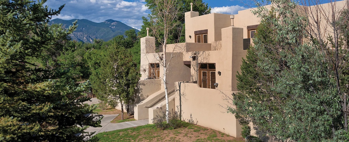 Gaudeix d'aquest preciós estudi. Relaxa la ment i el cos en una preciosa sauna de cedre. Surt per la porta i dona un passeig al capvespre amb unes vistes impressionants de la muntanya. Pati petit i dolç ple d'arbres fruiters. Entrada privada i molt d'aparcament. Fàcil accés al nord o al sud: a 15 minuts del centre de la plaça o condueix cap al nord per l'autopista 64 per arribar a Gorge Bridge o Ski Valley. Construïda per dones artesanes, és una llar especial lluny de casa. Som Superhosts amb experiència aquí per ajudar-te amb el teu viatge!