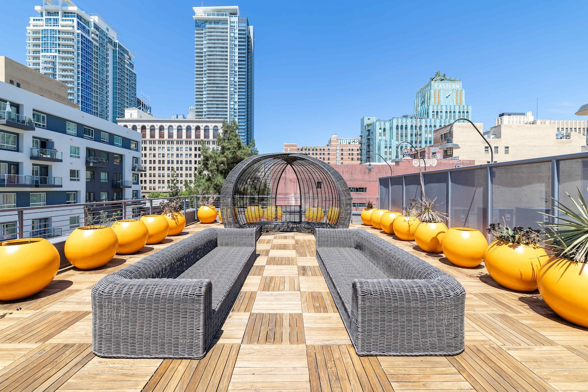 Un apartament adequat per a la mateixa Marilyn decorat amb un estil Jonathan Adler. Situat al centre de la ciutat, a prop de restaurants i botigues fantàstics. A minuts de diverses autopistes. A 20 minuts de LAX, Hollywood, Santa Monica. Gaudeix de les impressionants postes de sol i les vistes del centre de la ciutat. La piscina al terrat, el balneari i el gimnàs són un gran oasi al centre de la ciutat.