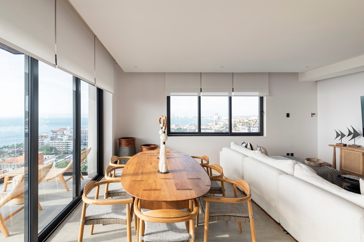 Vistes a l'oceà, postes de sol al terrat i el millor de Puerto Vallarta a tocar. Aquest modern apartament d'una habitació es troba a la planta 11 del luxós 105 Sail View, al cor de la Zona Romántica, a tres illes de Playa Los Muertos. Surt a les cafeteries, galeries, clubs de platja i la vida nocturna... i després torna a casa per gaudir de la tranquil·litat, l'elevació i les vistes panoràmiques del Pacífic. Pren el cafè del matí al balcó, passa la tarda a la piscina infinita i contempla la posta de sol a l'oceà.