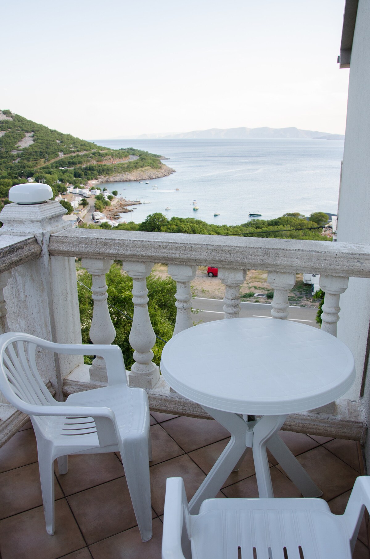 Aquest pis està situat a 2 minuts a peu de la platja i del casc antic. Ofereix una de les vistes més boniques del casc antic. Disposa d'aparcament gratuït. Està equipat amb TV de pantalla plana,aire condicionat i WIFI gratuït. La cuina inclou rentaplats, cafè i bullidor d'aigua calenta, microones i forn. El pis té una galeria amb un dormitori que té un llit i un racó de vacances.