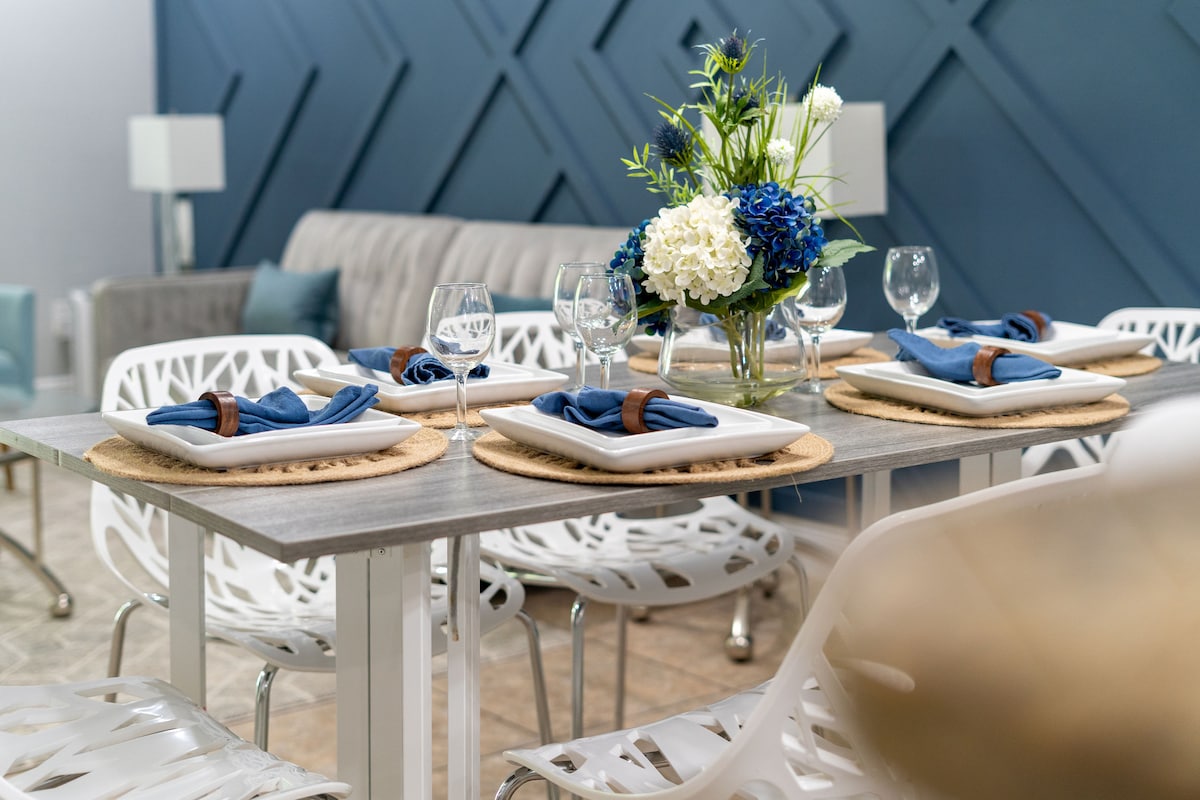 Casa elegant de 4 dormitoris i 3,5 banys amb decoració esmeralda i daurada. A fora, et refrescaràs en una piscina de 1,80 metres amb flotadors. La calefacció de la piscina és una funció addicional per 30 $ per nit i un mínim de 2 nits. Articles inicials proporcionats: 2 rotlles de paper higiènic/bany, 2 càpsules de rentat i 2 càpsules de rentaplats. A ★ 11 milles de Disney A ★ 22 milles d'Universal A ★ 27 milles de l'aeroport MCO A ★ 4,2 milles del camp de golf A ★ 3 km de Liquor & Grocery ★ Arribada a partir de les 16:00. Sortida abans de les 10:00 ★ NO ES PERMETEN ANIMALS DE COMPANYIA, FUMAR NI FESTES