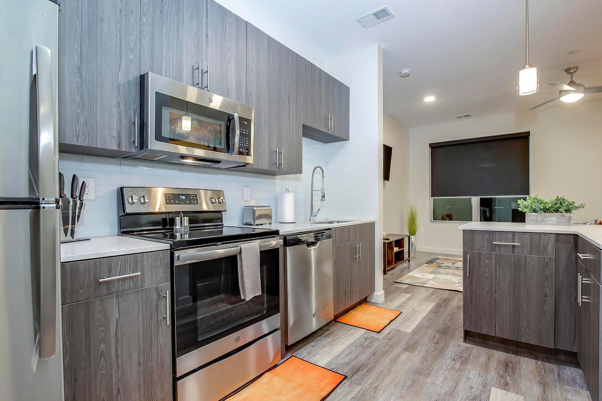 Allotja't al cor de NULU: aquest modern apartament a la planta baixa et situa a pocs passos dels millors restaurants, bars de bourbon i botigues locals de Louisville. Passeja fins als llocs més populars, com ara Angel's Envy i Rabbit Hole Distillery, gaudeix de tots els restaurants de NuLu o ves al centre en pocs minuts per gaudir de concerts, jocs o esdeveniments. El pis és còmode, tranquil i ben equipat: ideal per a parelles, viatgers en solitari o estades de negocis, amb aparcament tancat, wifi ràpid i tot el que necessites per a estades curtes o llargues.