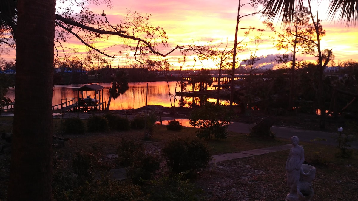Little Blue cottage on the Bay in Panama City ⛱️. We are located next to the bay and our cozy little town of St Andrews Bay, where locals walk along the pier, shop and window shop in our little town, a peaceful experience after coming back from the busy Gulf side. There is a park to walk your dogs or take the kids. Just a short drive to the Beaches and excitement. Our cottage is a 700 sq ft open plan with a king bed, described as the best sleeping mattress. Hosts are close by to help.