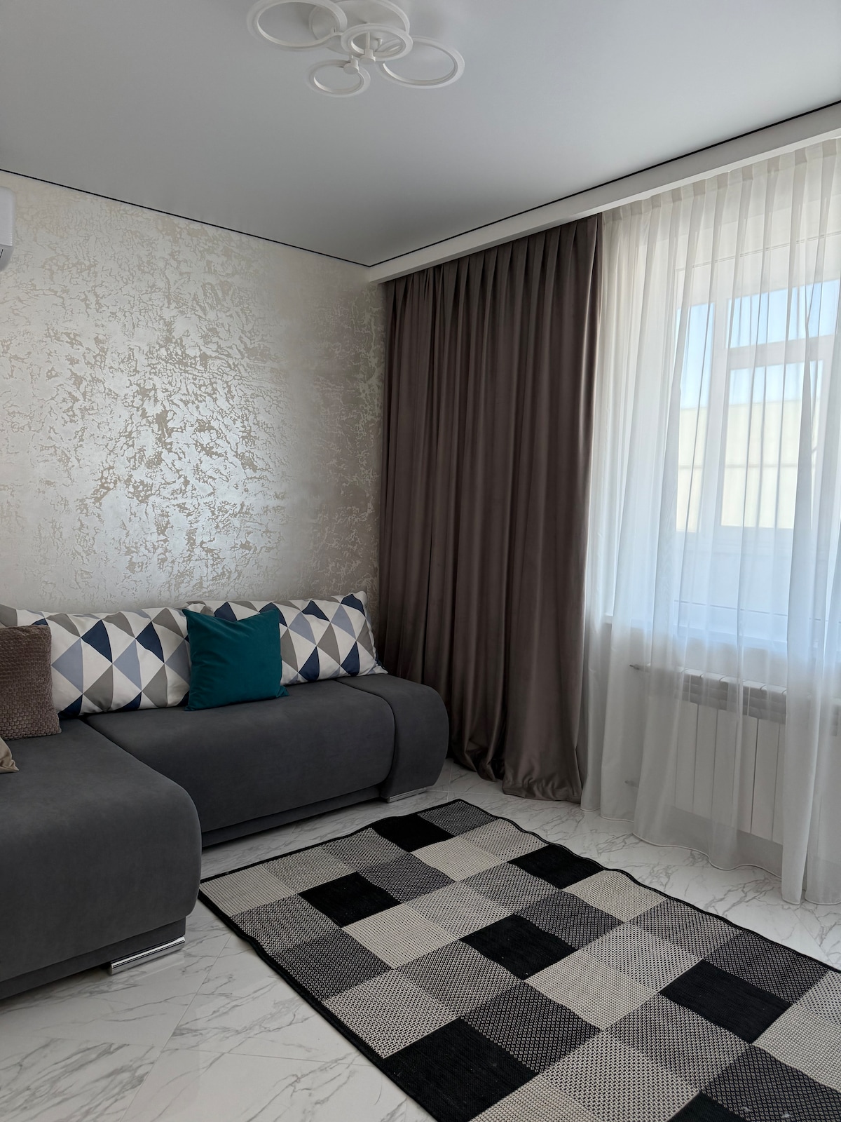 Nosaltres, la Victòria i en Constantine, et convidem a visitar-lo! El meu marit i jo hem viatjat molt, així que sabem com sentir-nos bé com a casa, siguis on siguis. Hem intentat que l'apartament sigui el més acollidor i còmode possible per als nostres hostes. L'apartament es troba en un edifici d'un complex residencial modern i net "Golden Era". Al territori hi ha aparcament gratuït per als hostes, una botiga, parcs infantils i un terreny d'entrenament per a adults. La platja més propera està a 1,3 km (15 min x a peu o 5 minuts amb cotxe). Benvingut!