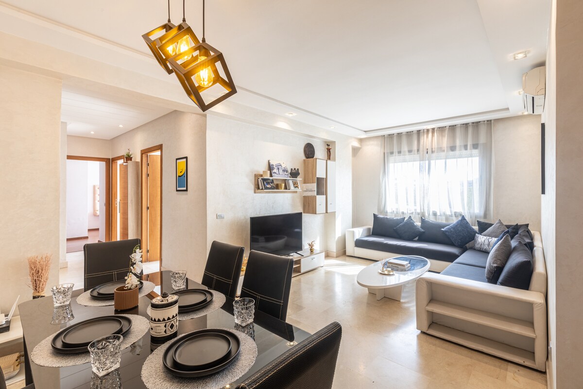 Descobreix el luxe al districte de les princeses de Casablanca. El nostre apartament elegant combina serveis moderns i una decoració elegant per gaudir d'una estada inoblidable. Amb una ubicació fantàstica: a prop de l'estadi 🏟 Mhamed 5 i de la ciutat financera de Casablanca. l'apartament està envoltat de grans centres comercials, boutiques d'alta gamma, restaurants gourmet i supermercats. l'apartament disposa de mobles de gamma alta i serveis essencials i moderns.