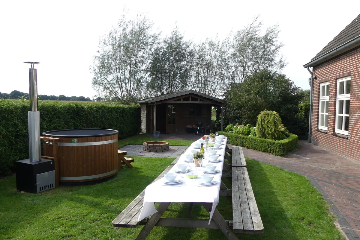La nostra casa rural independent (aprox. 90 m2) està moblada amb gust i comoditat. Disposa d'una zona d'estar amb estufa de llenya, una cuina espaiosa i dos dormitoris amb aire condicionat i bany. Les nombroses finestres donen a un preciós jardí de 5000 m2 (!) i ofereixen un mar de pau, espai i privacitat. El jardí ha estat decorat i mantingut amb molt d'afecte, i està ple de plantes i flors, que atrauen esquirols i diversos tipus d'ocells. Adjacent a la reserva natural de Maashorst i pobles bonics.