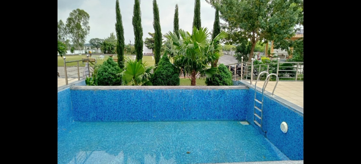 Escapa't a Aanandam Retreat, una tranquil·la casa rural de luxe de 2 habitacions a Ajmer amb piscina privada, gespa i un machhan al terrat per gaudir de les vistes de l'alba i les estrelles. Als hostes els encanta la combinació de comoditat i natura: dormitoris acollidors amb equipament i serveis moderns, una cuina a l'aire lliure per cuinar de manera autèntica i experiències com l'agricultura ecològica, les nits de foguera i les excursions al llac. És ideal per a famílies, parelles i grups que vulguin relaxar-se, reconnectar i crear records inoblidables. A més, s'hi poden allotjar animals de companyia i està envoltada de vegetació.