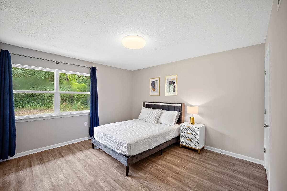 This newly renovated apartment is ideally located just 10 minutes from Amazon job sites, making it a fantastic choice for construction workers or business travelers. Step inside to discover a spacious living area filled with brand-new furnishings, designed for both comfort and style. Whether you're relaxing after a long day or getting some work done, you’ll find the space inviting and functional.