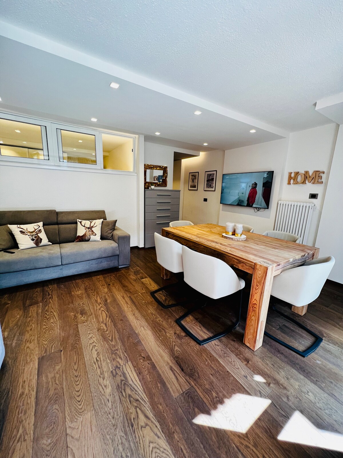 Pis de 40 metres quadrats, acollidor i lluminós, situat en una ubicació estratègica, ideal per a aquells que busquen comoditat i practicitat en un entorn tranquil. L'allotjament es troba a: - A 10 minuts a peu del centre, - A 200 metres de la planta de Colarin, - A 500 metres dels remuntadors d'esquí Spinale i 5 Laghi, - A 200 metres de la sortida dels senders - A 200 metres del supermercat. El Skibus para just davant de l'entrada de la propietat per arribar també a Pradalago, Grosté i Campo Carlo Magno.