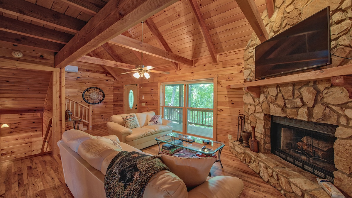 Escapa't a una cabana de fusta tranquil·la a la vora d'un rierol amb banyera d'hidromassatge privada, llar de foc de llenya i un espai exterior per fer-hi foc. Capacitat per a 4 persones i s'admeten mascotes! A només 15 minuts de Waynesville amb un accés fàcil (sense carreteres de muntanya empinades). Relaxa't al porxo amb el so del rierol, gaudeix de les estrelles i descansa després d'explorar els Smoky Mountains. Accés circular per a vehicles amb molt d'espai per aparcar, ideal per a remolcs o motocicletes.