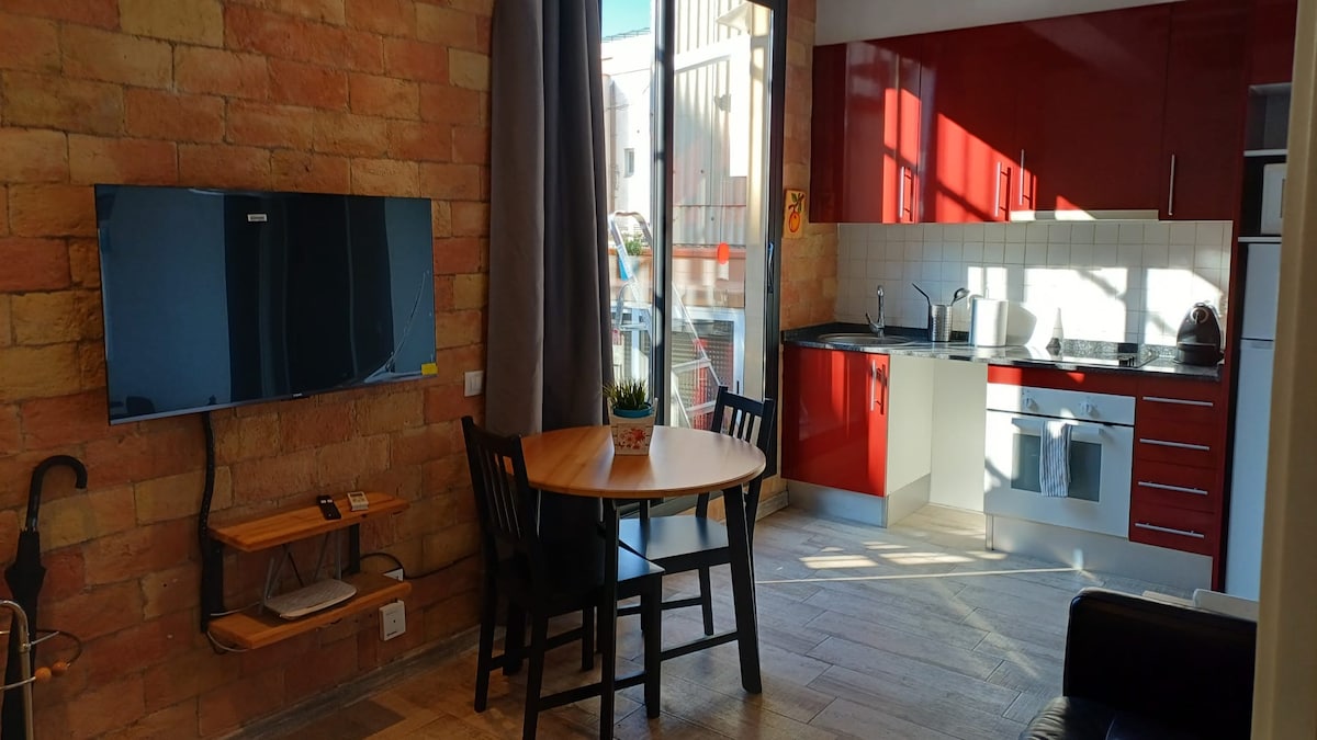 Apartament estudi Per a 3 hostes 2 terrasses privades L'edifici té ascensor Et donem la benvinguda al nostre acollidor pis situat a Tapioles! Vine i gaudeix amb els amics o la teva parella de la ubicació que t'ofereix aquesta unitat, perfecta per als turistes que vulguin explorar la zona. Aquest apartament estudi té un llit doble i, al mateix temps, disposa d'un sofà llit individual per proporcionar comoditat a 3 viatgers.