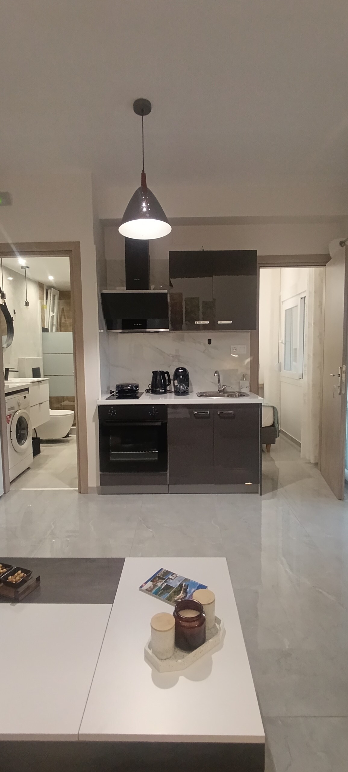 Estudi modern al centre de Volos amb aparcament Gaudeix de la teva estada en un estudi elegant i lluminós al 5è pis d'un edifici de nova construcció, al cor de Volos. L'espai està dissenyat amb una estètica minimalista i tons càlids, i ofereix comoditat i tranquil·litat a tots els hostes. La ubicació és ideal: cafès, restaurants, botigues i el passeig marítim, mentre que al mateix temps el 5è pis garanteix tranquil·litat i comoditat. Ideal per a parelles, viatges de negocis i escapades curtes.